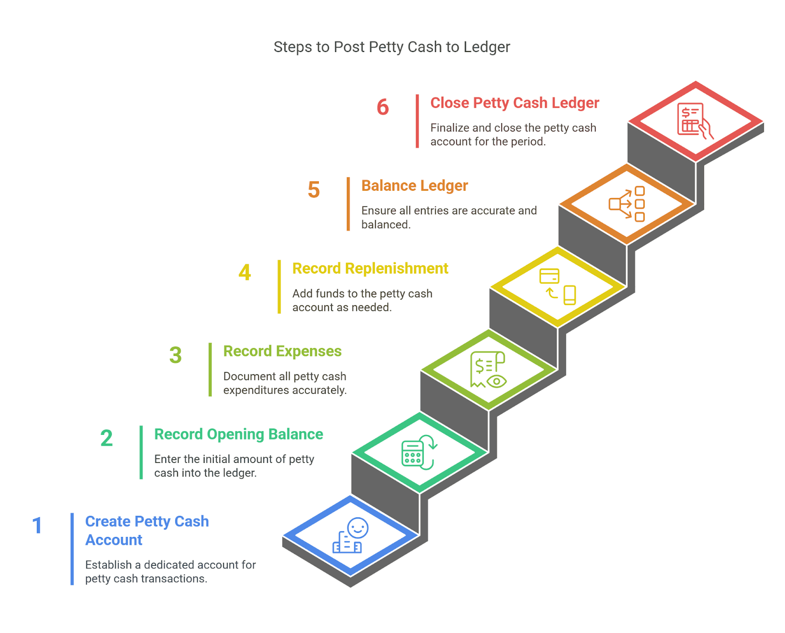 After reconciling all petty cash transactions, finalize the ledger by documenting the closing balance. This step ensures the account is ready for the subsequent accounting period.